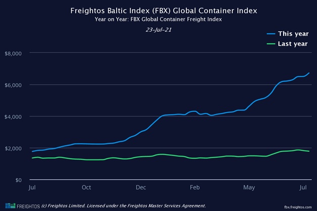 Tüm bunların üzerine 2021 Mart ayında Evergreen gemisinin Süveyş Kanalı’nda karaya oturması, Çin limanlarındaki aşırı yoğunluk ve en son olarak da Covid-19 yeni varyantının tekrar Uzakdoğu’da artış göstermesi sonucunda Temmuz 2021 itibarı ile global navlun seviyeleri rekor seviyelere ulaştı.